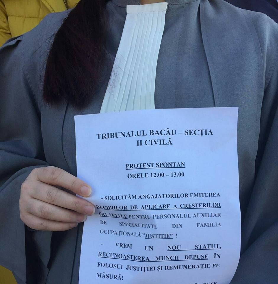 Aceştia s-au alăturat astfel colegilor de la Judecătoria Moineşti care protestează de luni, dar şi acţiunilor declanşate de angajaţii mai multor instanţe din ţară.