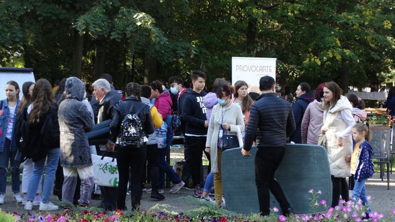 Duminică de poveste în Parcul Cancicov acolo unde un număr impresionat de copii, însoțiți de învățători, profesori și părinți au participat la cea de-a II-a ediție a proiectului „PROVOCARTE”. Elevii din 10 școli, coordonați de învățători și profesori au expus un kilometru de fișe de lectură, un record absolut comparat cu ediția de anul trecut atunci când s-au expus doar 220 de metri de fișe de lectură. Practic, copiii și-au expus fișele de lectură din cărțile citite în vacanță. Și mai important este faptul că în cadrul acestei ediții „PROVOCARTE” s-au donat cărți pentru elevii din mediul rural.