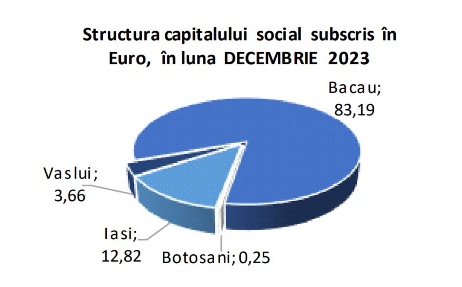 Cu privire la valoarea capitalului social subscris de societățile înmatriculate în județul Bacău în aceeași perioadă, aceasta a fost de 118,1 mii lei (RON), reprezentând 83,17% din regiunea de nord-est și 1,16% din totalul național.