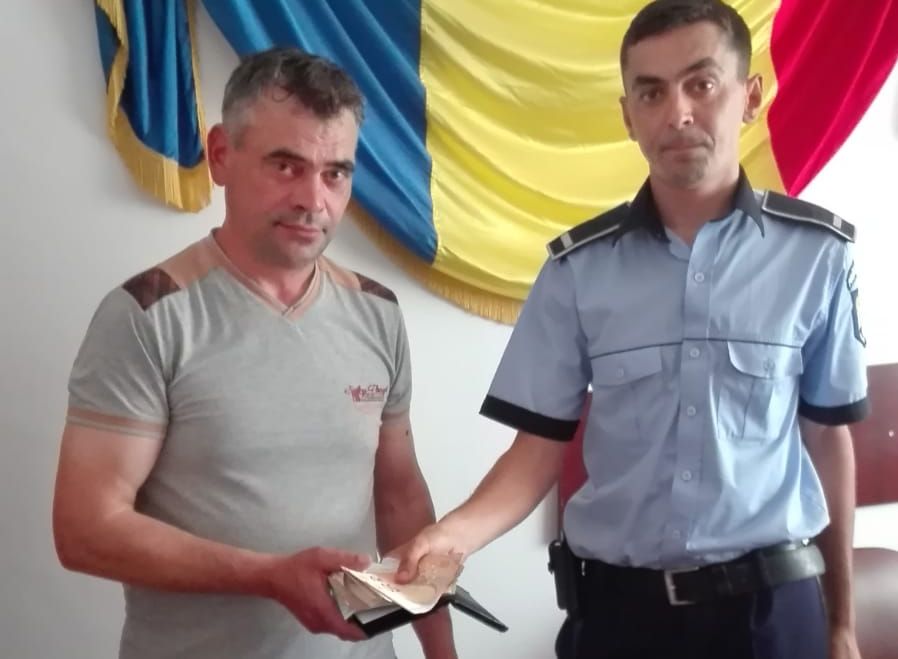 Bărbatul a fost invitat la sediul Postului de Poliţie Răcăciuni unde poliţiştii i-au restituit portofelul ce conţinea documente personale şi suma de aproximativ 2000 de euro.