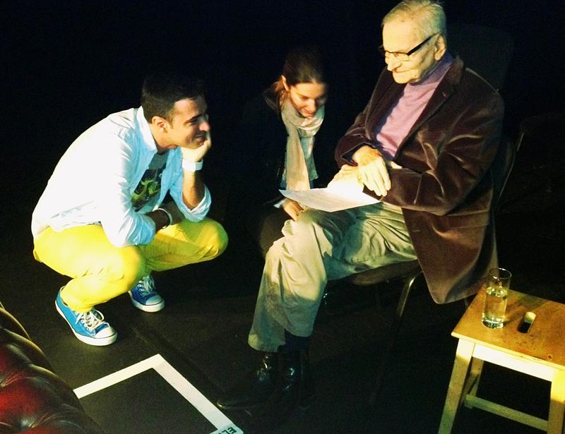 A fost o tensiune frumoasa in sala si, pret de doua ore, dincolo de respectul pe care-l poarta fiecare dintre membri echipei VUNK pentru Maestru Beligan, a fost o atmosfera de lucru: un regizor care a urmarit ca textul sa fie spus perfect de un actor si un scenarist care a privit curios, emotionat si cu o oarecare mindrie, cum textul lui prinde o viata noua, cu o voce nazala si o experienta de viata de 95 de ani.