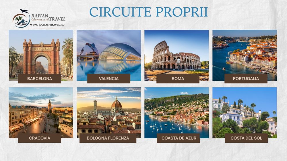 De la ofertele foarte avantajoase aduse de Rafian Travel pentru litoralul românesc am trecut la celelalte produse de care se pot bucura băcăuanii. Aici, se pare că, în top sunt circuitele, despre care am obținut detalii de la Mihaela: „Avem partea de circuite externe care cuprinde: cazare, transfer, transport, ghid local, iar în funcție de circuit și servicii de masă. În plus, reprezentanții agenției noastre sunt prezenți în aceste circuite, ceea ce face ca turistul aflat în această vacanță să nu mai aibă nicio grijă. Noi ne ocupăm de tot.” Iar circuitele pe care le organizează Rafian Travel sunt: Valencia 14-18 aprilie; Barcelona 05-09 mai și 22-26 septembrie; Roma 23-27 martie; Coasta del Sol 10-17 mai; Coasta de Azur 22-26 iunie: Lisabona-Porto; croaziere maritime și multe altele care pot fi descoperite în agenție.