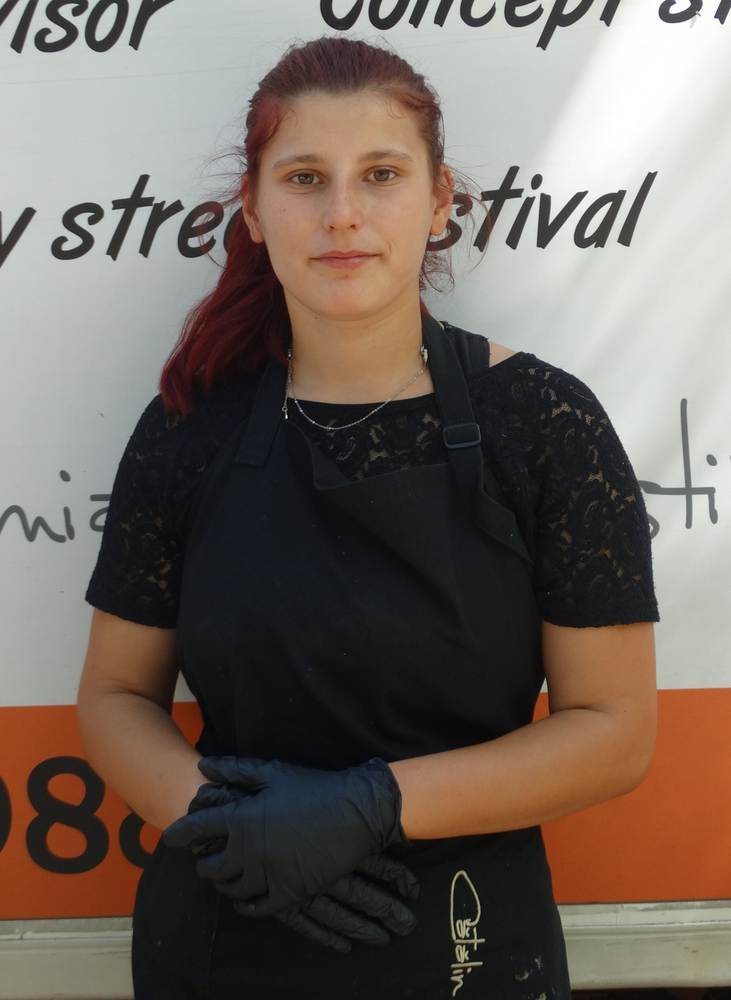„Sunt pentru prima dată la acest festival și deja pot să spun că am învățat, deja, lucruri foarte tari, care îmi sunt de folos, cum ar fi…tăiatul roșiilor în felii subțirele. Abia așteptam să vin aici și sunt încântată. Anul trecut nu am putut participa pentru că am fost la muncă, iar acum mă pregătesc pentru bac, dar particip și aici. Viitorul meu e clar în acest domeniu și mă văd în viitor ca ospătar.”
