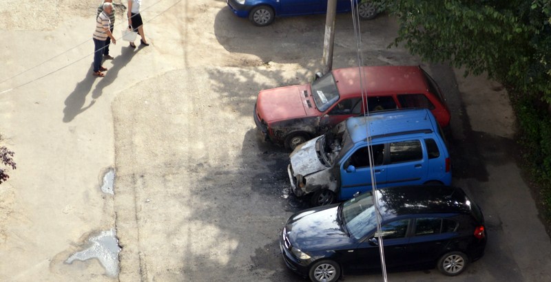 La lumina zilei, se poate observa ca masina incendiata nu mai poate fi folosita, suferind daune majore la motor si in habitaclu. Din pacate, un autoturism Dacia 1310 a fost serios atins de flacarile pârjolului, la fel si un altul de lux, aflat chiar in imediata apropiere a focului.