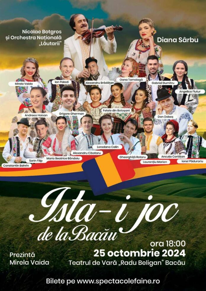 Pe scena băcăuană vor urca artiști de seamă ai folclorului românesc, precum Mirela Vaida, Alexandru Brădățan, Ion Paladi, Oana Tomoiagă, Gabriel Dumitru, Angelica Flutur, Andreea Haisan, Grigore Gherman, Fetele din Botoșani, Dan Doboș, Constantin Bahrin, Sorin Filip, Maria Beatrice Bandoiu, Alexandru Cibotaru, Loredana Călin, Gheorghiță Rotaru, Laurențiu Marian, Ancuța Corlățan, Ionel Pădurariu și mulți alții. Aceștia vor încânta publicul cu melodiile lor îndrăgite, într-o atmosferă autentică de sărbătoare.