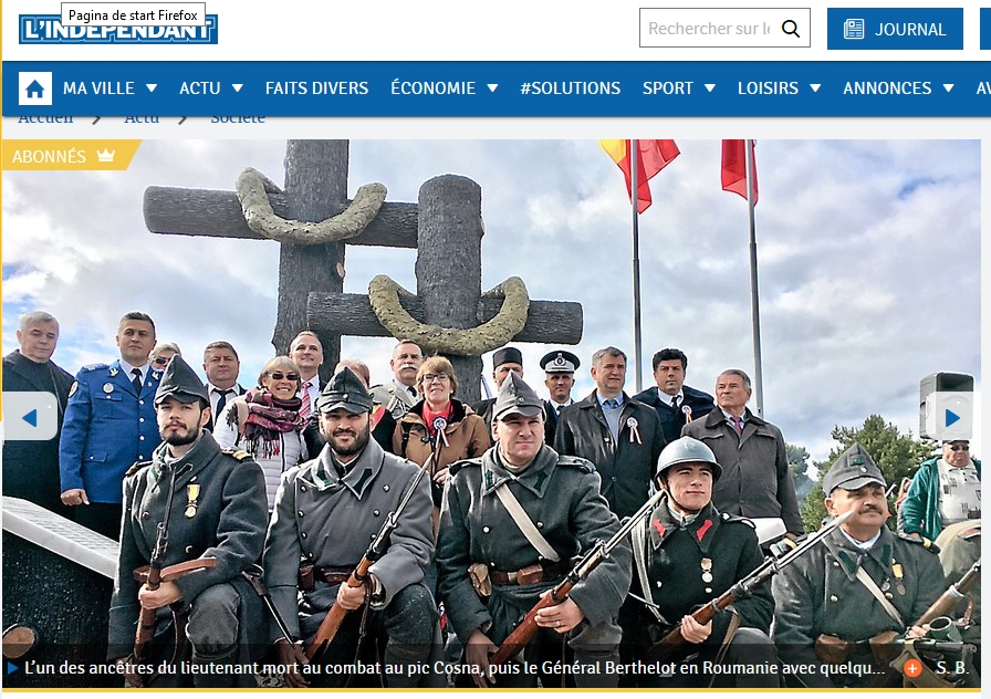 Dezvelirea și sfințirea recentă a monumentului dedicat eroilor căzuți în luptele din Primul Război Mondial de pe Dealul Coșna (astăzi în comuna Pârgărești) a fost descrisă și omagiată și în ziarul francez L’Independant. La evenimentul care a avut loc pe Dealul Coșna, care a fost prezentat și în ziarul nostru de săptămâna trecută, au participat și reprezentanți ai acestei publicații, alături de două dintre nepoatele ofițerului francez Paul-Edouard Berge care a luptat și și-a dat viața, la 28 de ani, în luptele de la Coșna. A mai fost prezent, de asemenea, și atașatul militar al Franței la București.