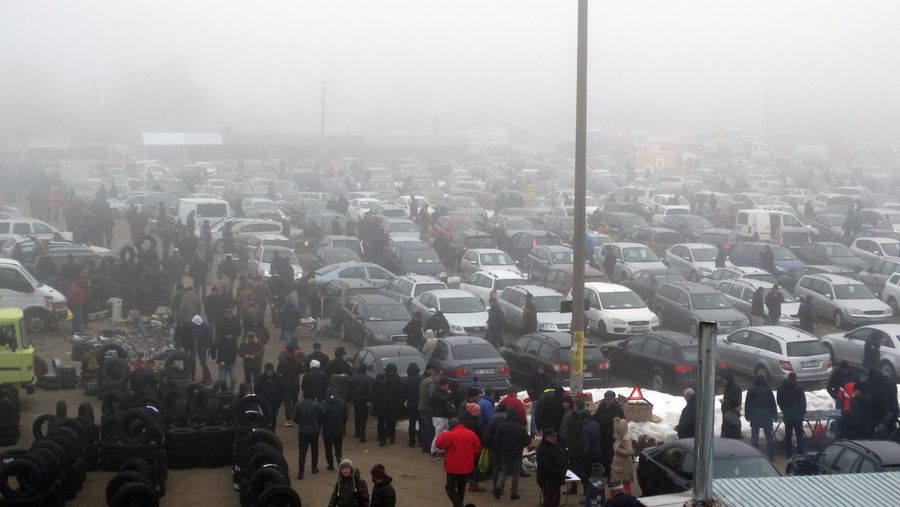 Sunt mașini înmatriculate, cu numere roșii sau chiar cu numere nemțești, proaspăt aduse și foarte arătoase. Actele se pot face pe loc, în zonă existând birouri specializate în așa ceva. Într-unul din ele se lucra de zor la dactilografierea actelor. Omul de la mașina de scris văzând că-l privesc insistent îmi face semn să intru. Îi explic, tot prin semne, că doar mă uit și-mi văd de treabă. Lângă mine un grup format din trei bărbați și două femei vorbesc de conversia din euro în lei. Probabil că deja au bătut palma pentru o mașină. Înaintând, un miros de grătar îți dilată nările.