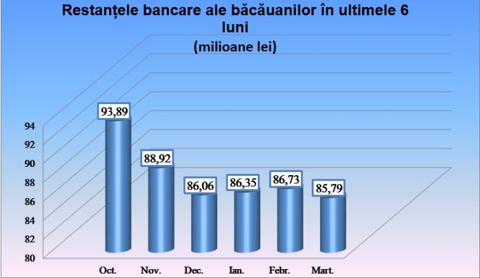 Băcăuanii au intrat în „era” pandemiei cu restanțe bancare mai mici cu aproape un milion de lei, dar și cu depozite bancare și chiar credite bancare în creștere. La finalul lunii martie, conform datelor publicate de Banca Națională a României (BNR), restanțele au ajuns la 85,79 de milioane de lei (cam ca în octombrie 2018), depozitele la aproape 13 miliarde de lei, iar creditele la aproape 4.400 de milioane de lei.