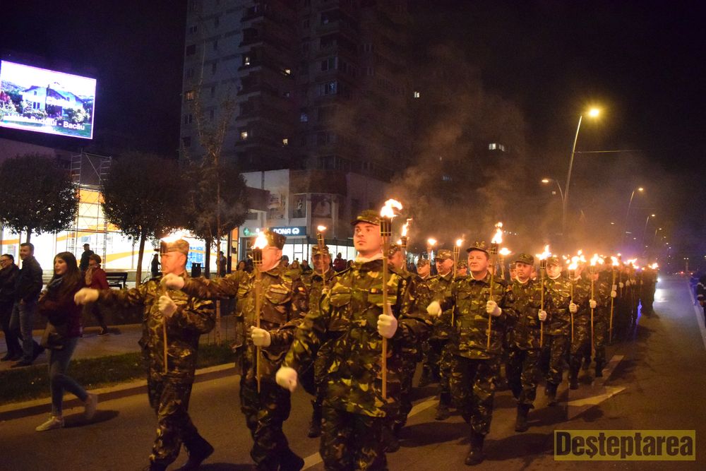 Militarii băcăuani au organizat, joi seară, în încheierea festivităților ocazionate de Ziua Armatei, o retragere cu torțe prin centrul orașului, pe traseul statuia lui Stefan cel Mare- Cimitirul Central.