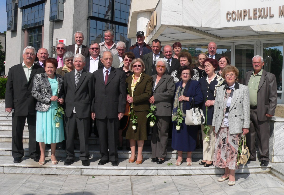 În semn de respect şi aducere aminte, emoţionanta întâlnire a avut loc în sala ce poartă numele fostului lor profesor, Iulian Antonescu (istoric, arheolog, ctitor de muzee), de la Muzeul de Istorie. Cel care s-a ocupat mai bine de doi ani de a-i reuni, din toate colţurile ţării, pe foştii lui colegi, a fost prof. Mihai Mantea, din P. Neamţ. Oameni în vârstă, mulţi pensionari acum, s-au recunoscut cu greu pe holurile muzeului, deoarece nu s-au mai revăzut niciodată de la terminarea facultăţii: lacrimi, îmbrăţişări, flori, amintiri redate în grabă, poveşti de viaţă, doamne elegante, bărbaţi sobri, cu zeci de ani la catedră, trăiţi în spiritul şi principiile care au dominat învăţământul universitar al acelor ani: muncă, perseverenţă, dragoste faţă de elevi şi disciplinile predate. După intonarea imnului „Gaudeamus igitur”, fostul decan al Facultăţii de Istorie-Geografie, prof. dr. Ioan Mitrea, acum la 80 de ani, a strigat catalogul: Prezent! – 25, Absenţi – 8 , Decedaţi – 10, Bolnavi – 4 , Nu au fost găsiţi -4, au fost răspunsurile din bănci. În memoria celor dispăruţi şi a profesorului Iulian Antonescu s-a ţinut un moment de reculegere.