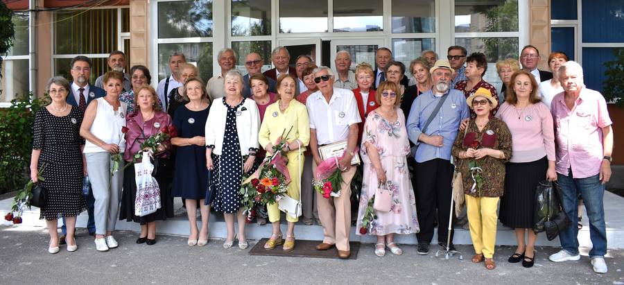 Foștii elevi au acordat fiecărui profesor, alături de câte un superb buchet de flori și Diplome Aniversare. „De fiecare dată ne aducem aminte de cei care ne-au îndrumat pașii, de părinții și bunicii noștri, dar și de profesorii noștri – a spus, la final, și Geo Popa. Pentru că nu există nicio diferență între ei. Ei sunt familia noastră mare, iar gândurile noastre s-au întors mereu către ei. Dar de acum, după 50 de ani, se va întâmpla tot mai des.”