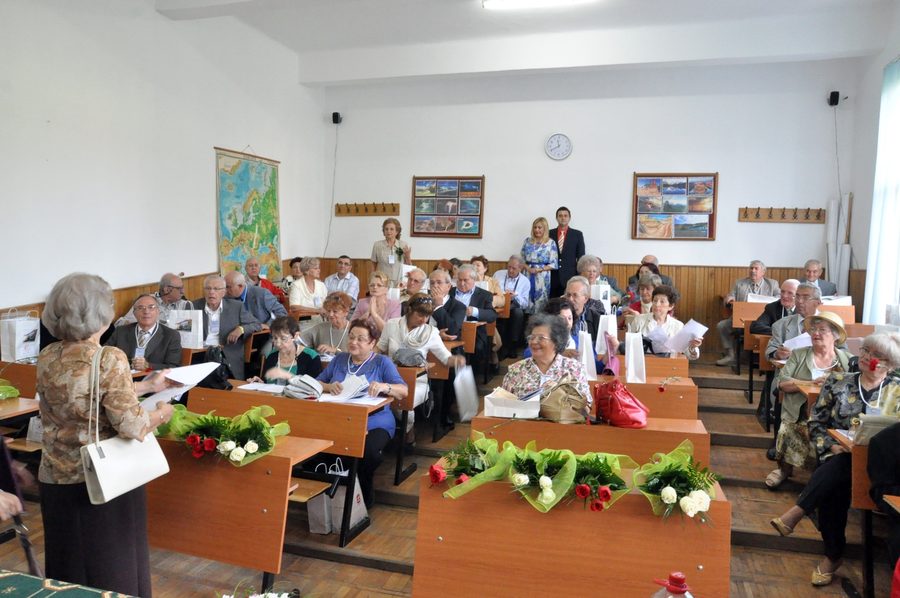„E toamna iar, se strâng recoltele, stolurile pleaca spre tarile calde, dar noi am revenit in banci pentru a ne aminti cum a fost acum 50 de ani”, au fost cuvintele de inceput. 50 de ani in care fiecare dintre ei si-a cladit o cariera, a intemeiat o familie, a crescut copii. Au trecut 50 de ani in care multi dintre ei nu s-au mai revazut, viata aruncându-i pe cai diferite.