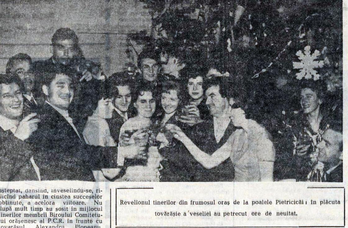 O mare parte a articolului este dedicată revelioanelor organizate de diferite colective de muncă. La Trustul regional Gostat, sărbătoarea este descrisă ca fiind petrecută „împreună cu familiile lor, cu invitații”, într-o atmosferă de convivialitate. Directorul instituției ține un toast în care este făcut un bilanț al anului: