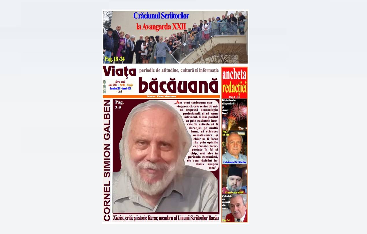 În obișnuita manieră de a publica interviuri cu personalități băcăuane, dialoguri pregătite pentru sumarul celui de al patrulea volum „Personalități la ora destăinuirilor” care va apărea în 2025, revista pentru lunile decembrie și ianuarie a inserat un astfel de cuprinzător interviu cu ziaristul, criticul și istoricul literar Cornel Simion Galben.
