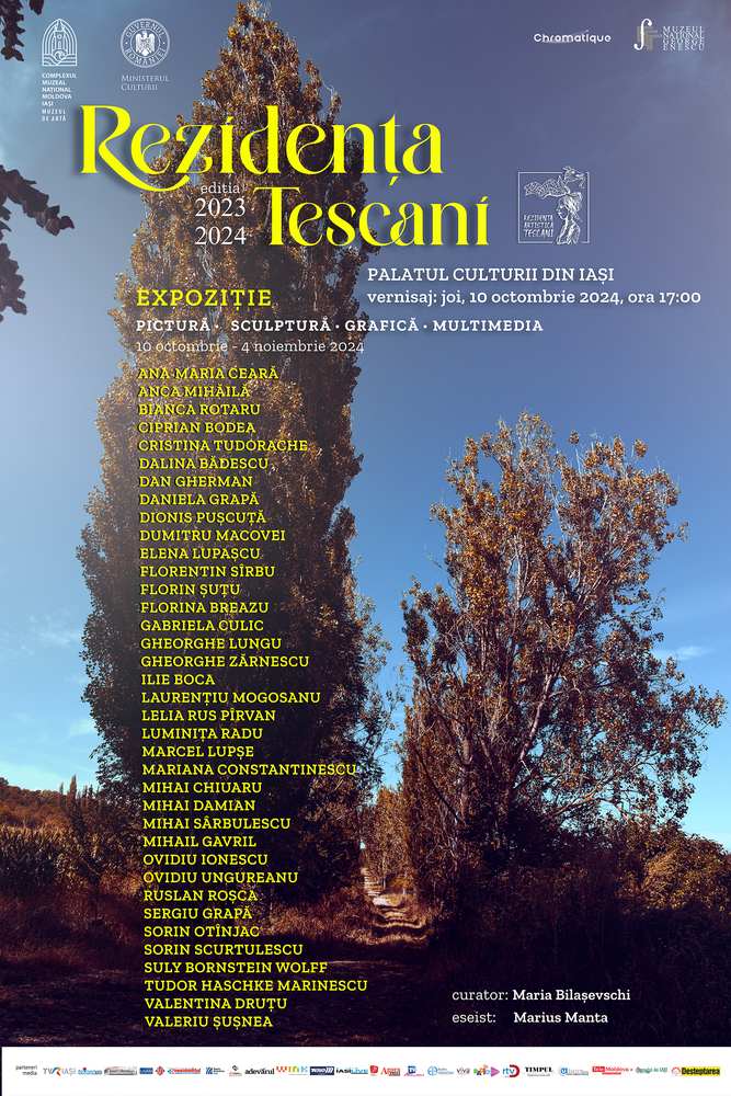 Muzeul de Artă din cadrul Complexului Muzeal Național „Moldova” Iași organizează la Palatul Culturii din Iași, în perioada 10 octombrie – 5 noiembrie 2024, expoziția taberei internaționale de creație „Rezidența Tescani 2023, 2024”, un proiect inițiat și dezvoltat de artistul vizual Ovidiu Ungureanu, în parteneriat cu Muzeul Național „George Enescu”, Secția „Dumitru și Alice Rosetti Tescanu – George Enescu”, Tescani (jud. Bacău).