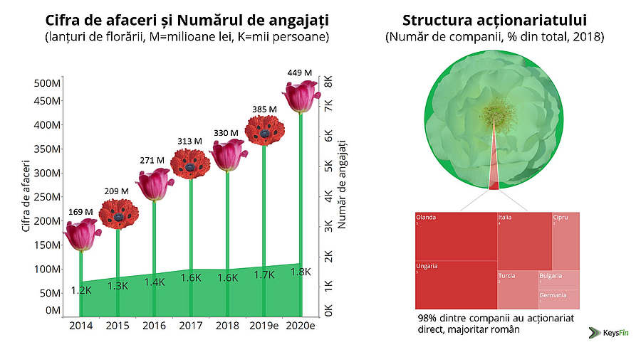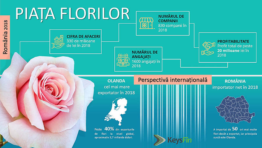 Afacerile cu flori au crescut considerabil în ultimii cinci ani, cu 96% față de 2014 și cu 6% față de 2017, la 330 milioane de lei în 2018. Astfel, business-urile din domeniul floral din România și-au dublat cifra de afaceri în ultimii cinci ani și vor continua să crească și în 2020, cu aproximativ 15%, până la 450 milioane de lei, potrivit estimărilor analiștilor KeysFin.