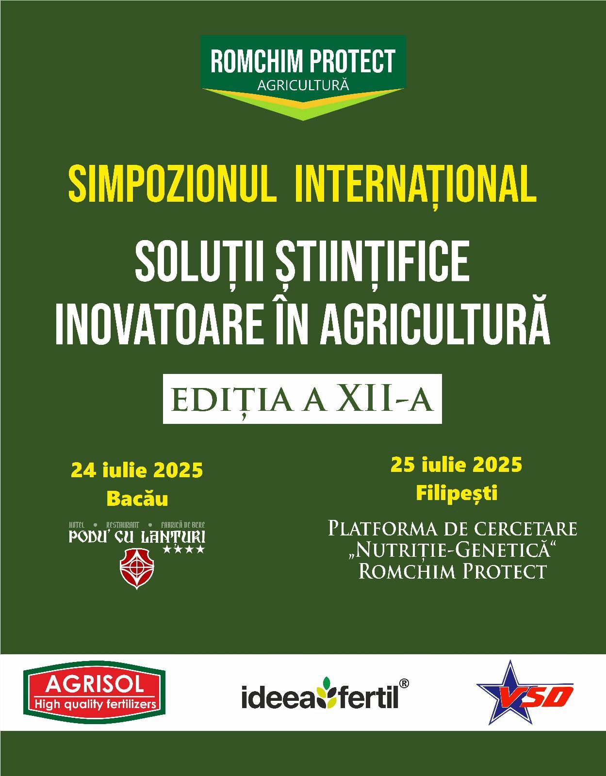 Într-un moment în care agricultura se află la intersecția dintre performanță și responsabilitate ecologică, Romchim Protect, împreună cu Ideea fertil și VSD organizează cea de-a XII-a ediție a Simpozionului Internațional “Soluții Științifice Inovatoare în Agricultură”, un eveniment de referință pentru inovația aplicată în câmp.