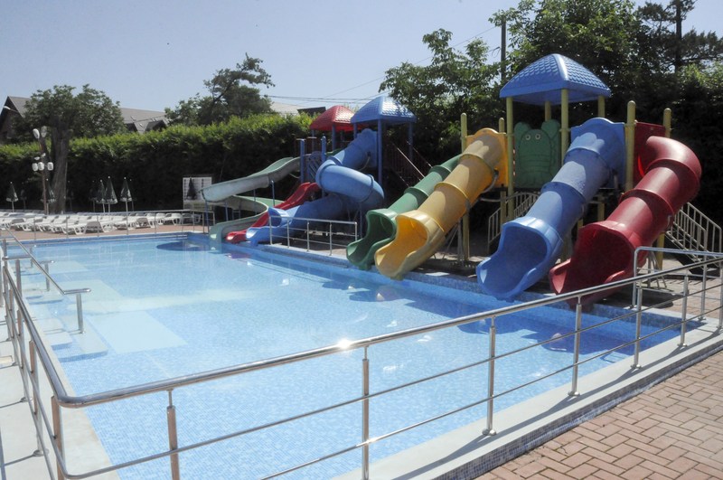 Piscina mare are o lungime de 40 m, latimea de 20 m iar adâncimile sunt de la 1 m la 1,5 m. Piscina mica, acolo unde este amplasata si ciupercuta cu apa, are lungimea si latimea de 20 m, cu adâncimi de la 10 cm la 50 cm, bazinul adresându-se celor mici. Nu e de neglijat bazinul cu jacuzzi, dar nici zona de bar, terasa si fast-food.