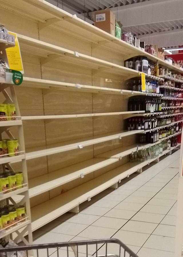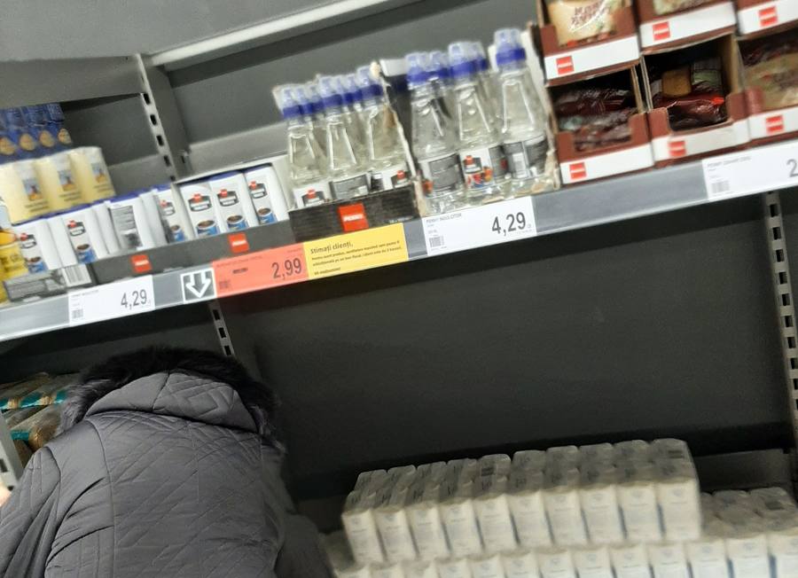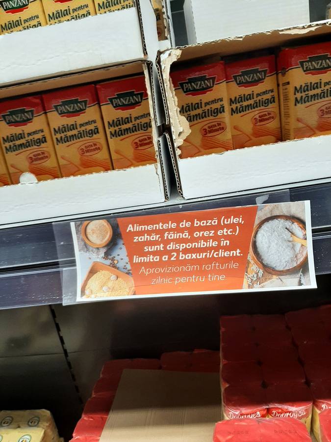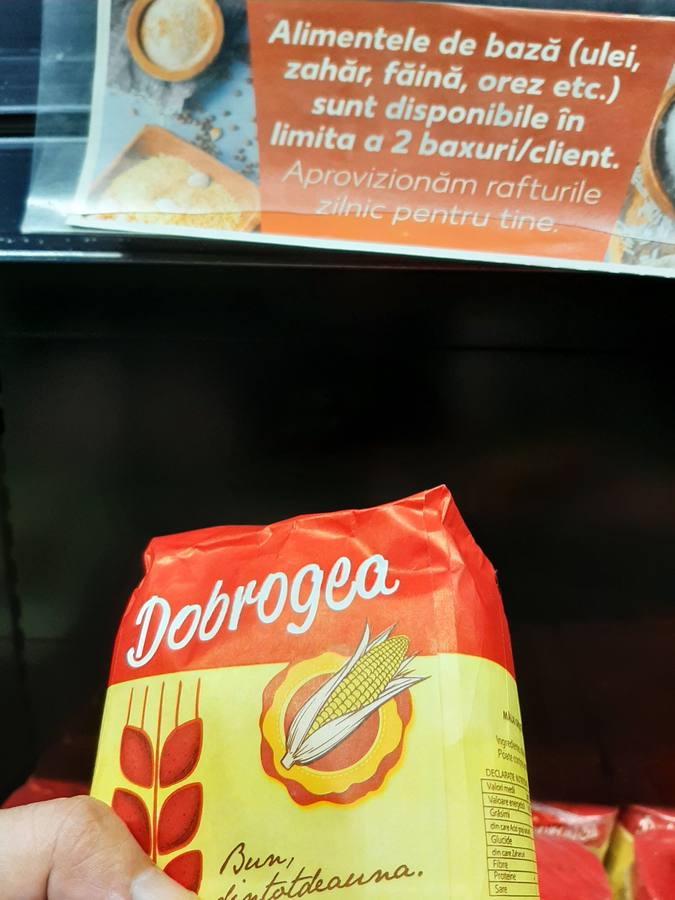 O tură prin magazine confirmă decizia managerilor acestor unități de a limita achiziționarea de alimente de bază la anumite cantități pe un singur bon fiscal. La Profi, de exemplu, se puteau cumpăra cel mult 6 litri de ulei. La fel și la celelalte alimente de bază, cum ar fi făina de grâu, zahărul, mălaiul, orezul, a căror achiziționare era limitată la maximum 6 kilograme. „Îmi amintesc, totuși, că limitarea asta apăruse înainte de actuala isterie. De exemplu, pe 8 martie, luasem ce trebuia ca să prepar mucenici pentru a doua zi, și afișul era deja postat”, spune o gospodină aflată la cumpărături. Aceeași situație am întâlnit-o și la magazinele Penny, unde, la fel, un anunț stabilea o limitare la cel mult două baxuri de alimente de bază pentru fiecare client. Magazinele Kaufland se înscriu în aceeași linie, plafonând achiziționarea de astfel de produse tot la 2 baxuri pe un bon, încredințându-i, în același timp, pe clienți că unitatea alimentează rafturile, zilnic. Ceea ce se și putea lesne observa, spațiile de expunere a mărfii gemând de produse, culmea!, la prețuri decente, care nici măcar nu aminteau de acea eventuală scumpire exagerată diseminată în rândul populației. „Sunt stocuri până la anul, dacă e să mă gândesc. Dar, așa e românul. La noi ca la …ruși”, îmi aruncă, cu subînțeles, o angajată de la Kaufland. Și rețeaua Lidl, deținută de același proprietar care are în portofoliu magazinele Kaufland, a adoptat măsura limitării, în cazul alimentelor de bază. La fel ca în restul magazinelor vizitate, și aici rafturile erau pline cu produse. Suficiente și la prețuri normale, încă.