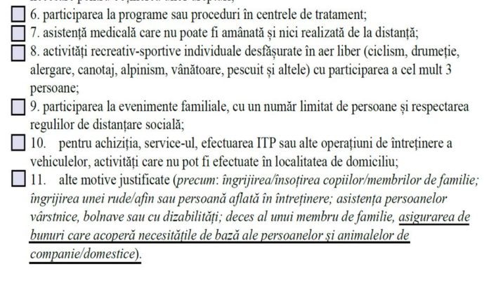 Modelul declarației pe propria răspunderea fost modificat la câteva ore după aprobarea sa pentru a include între motivele deplasării și mersul la cumpărături.