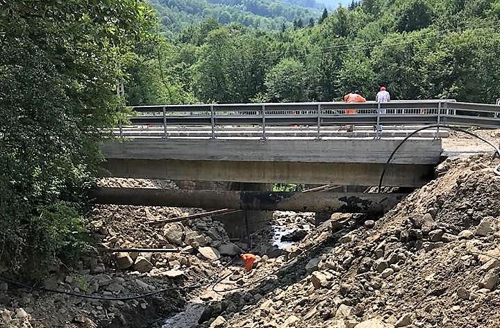 Secția de Producție a Direcției Regionale de Drumuri și Poduri Iași a finalizat lucrările de reparații la podul provizoriu de pe DN 11, km 93+704, Onești – Brașov, în localitatea Poiana Sărată.