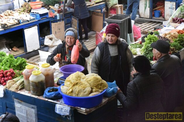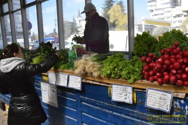 În hala mare de la parter, la tarabele cu zarzavat și legume, prețurile au rămas la fel. Nu se compară gustul castraveților murați, pe gustate, 15 lei/kg (pentru salata de boeuf, friptură), sau a verzei murate pusă anume pentru sarmale, 10lei/kg, cu ce cumperi cam tot pe acolo, de la supermarket. Plus că acolo nu găsești frunze de potbal, 10 bucăți la un leu legătura. Cele de viță de vie au sărit la 2 lei.