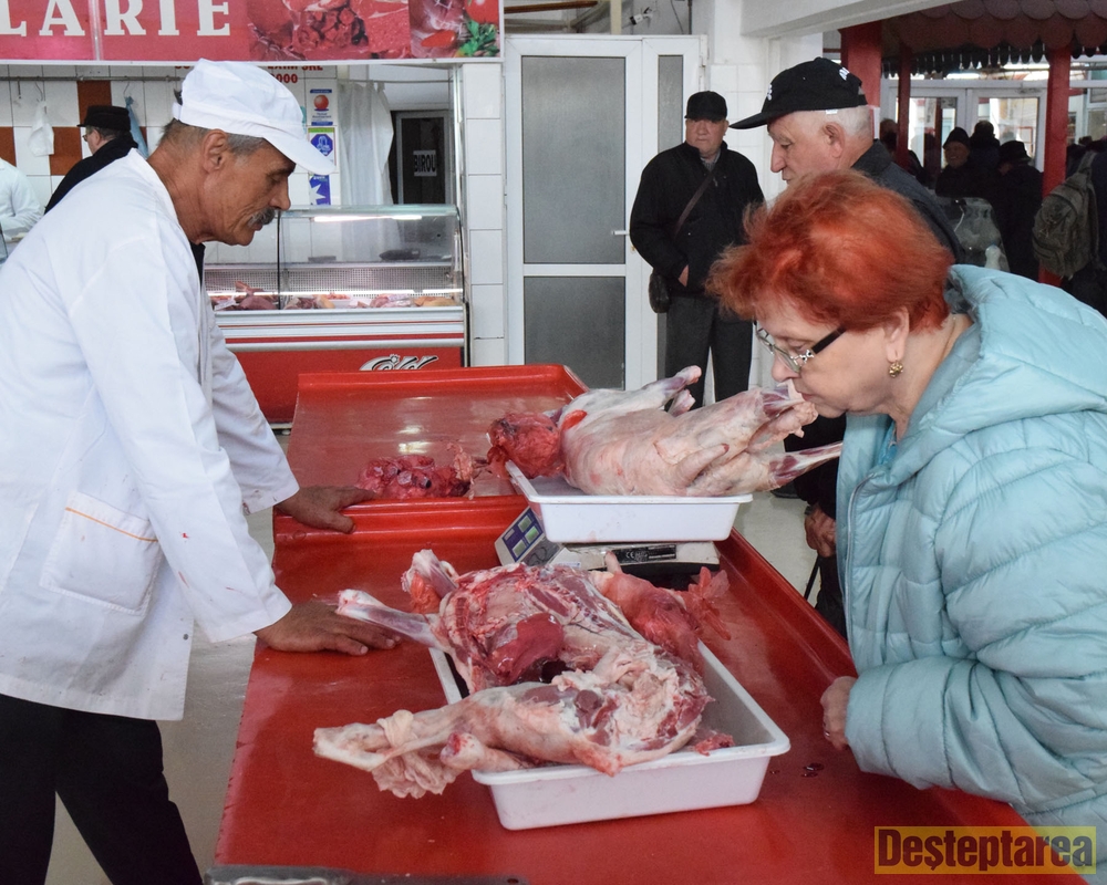 De dimineață, gospodinele au negociat la sânge pentru jumătățile mai mici de miel, cu măruntaie, componente obligatorii pentru prepararea drobului tradițional. Au fost mult mai puțini cei care care au cumpărat un miel întreg de 10-12 kilograme. Pe porțiuni tranșate da! Pulpă și coaste de pus la macerat pentru o friptură la tavă. Există și ofertă pentru iezi, tot la 40 de lei, dar la comandă.
