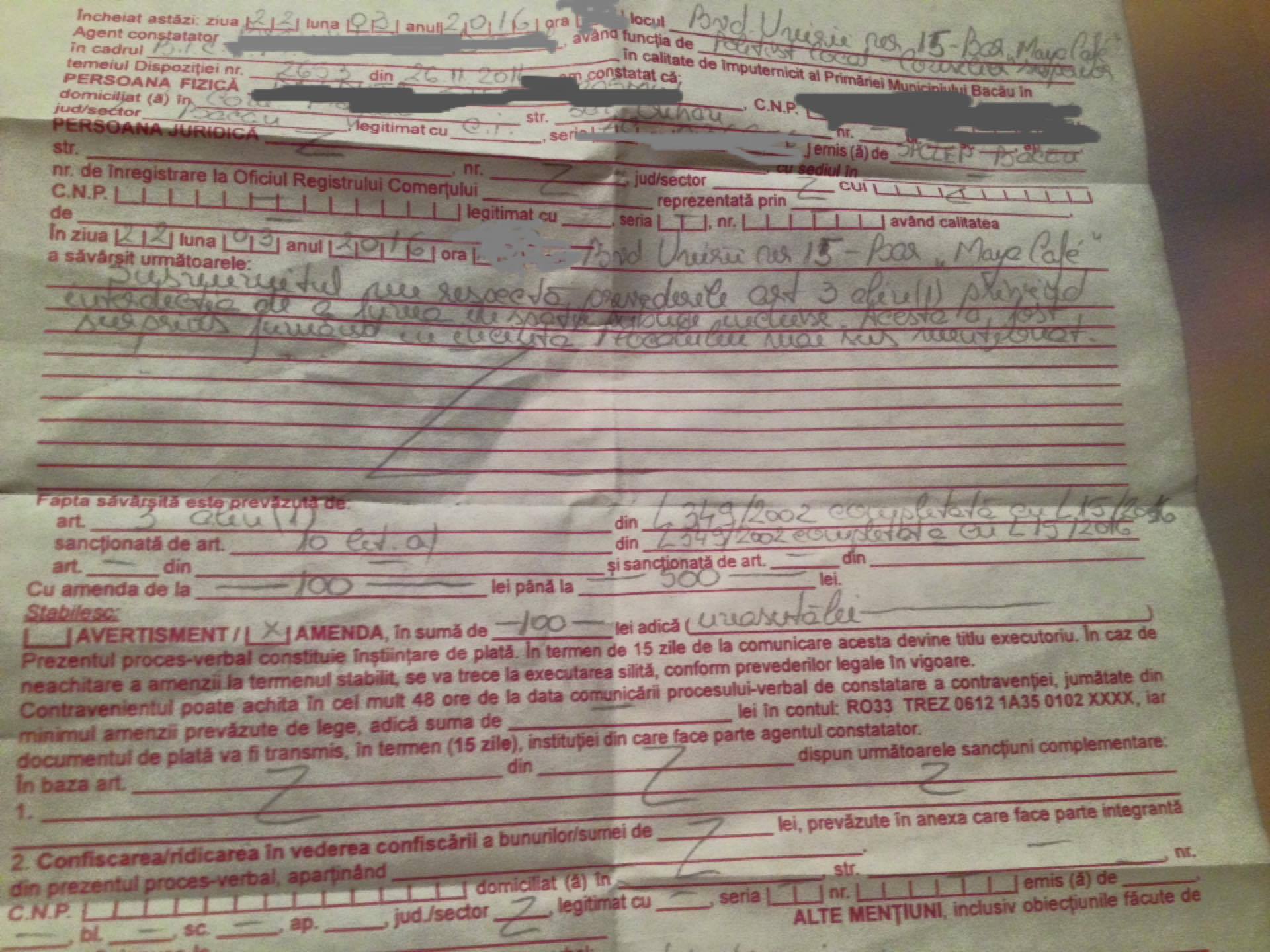 Este si cazul unui bacauan care a fost amendat cu 100 de lei dupa ce a fost surprins ca fuma intr-o cafenea de pe Bulevardul Unirii, din municipiul Bacau.
