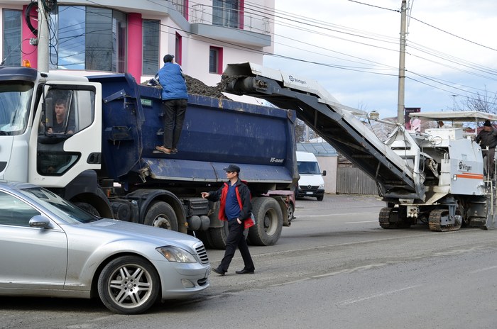 Incepând de luni, pe strada Mioritei si-au facut aparitia constructorii.