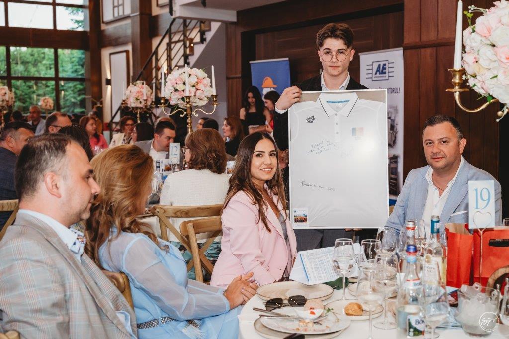• Un tricou unic, purtând autograful și o dedicație specială pentru Gala din acest an, oferit de multiplul campion mondial și olimpic la înot, David Popovici. Prețul de pornire la licitație a fost de 2.000 lei și a fost adjudecat contra sumei de 6.100 de lei