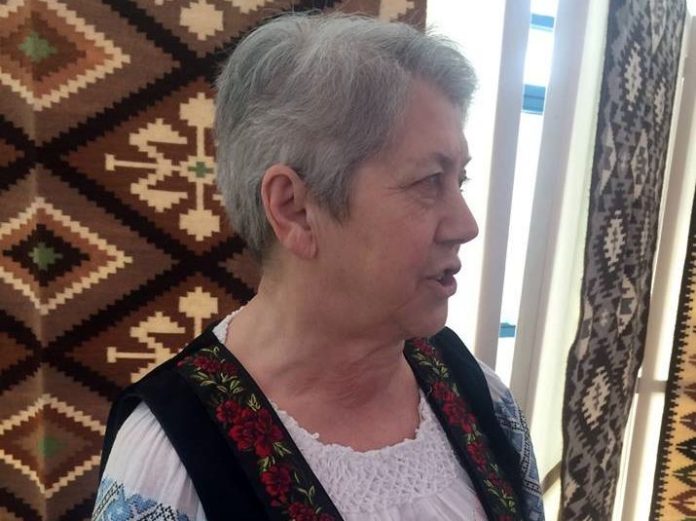 „Am 70 de ani împliniți, dar de la vârsta de 6 ani m-a fascinat războiul de țesut. În acei ani ai copilăriei am ajutat la țesut iar la primele covoare pe care le-am făcut am lucrat împreună cu mama și cu surorile mele! De atunci, de atâta timp, am lucrat și lucrez scoarțe, covoare și multe lucruri, cum sunt anii, care mai buni, care mai răi… atâția ani! Lucrez «în două ițe» (cu andreaua) și «în trei și patru ițe», când fac fețe de masă, prosoape. Fac și ii populare, la care lucrez mai mult iarna, deoarece primăvara și cât e vara de mare țes la război. Am o catrință cu o vechime de peste 100 de ani! Costumul popular național din zona Oituzului strălucește prin betele de diferite culori, prin cheptărică, baticul e unul mocănesc (negru, cu flori, cu model de culoare galbenă pe margine) iar ia are motivele populare cusute cu negru pe o pânză albă, mai subțire.