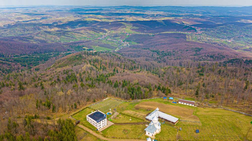 Perched on the high ridges of the Carpathian Mountains, amidst the spectacular landscape of Bacău County, lies the Saint Elijah Monastery in Berzunți – a place of prayer and tranquility, with a turbulent history, yet one filled with hope and rebirth. Located on Mount Berzunți, beneath the peak of Bulimandru, where three borders meet, the monastery watches over the valleys of Trotuș and Tazlău. As in the past, access is possible via forest roads that climb from the villages of Comănești – Dărmănești – Plopu, Poduri, Livezi – Berzunți – Saint Elijah, and Târgu Ocna – Larga – Saint Elijah.