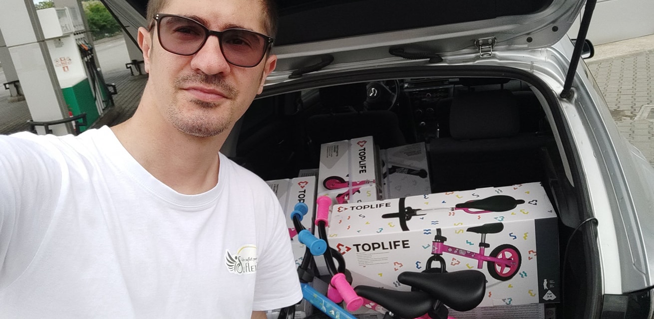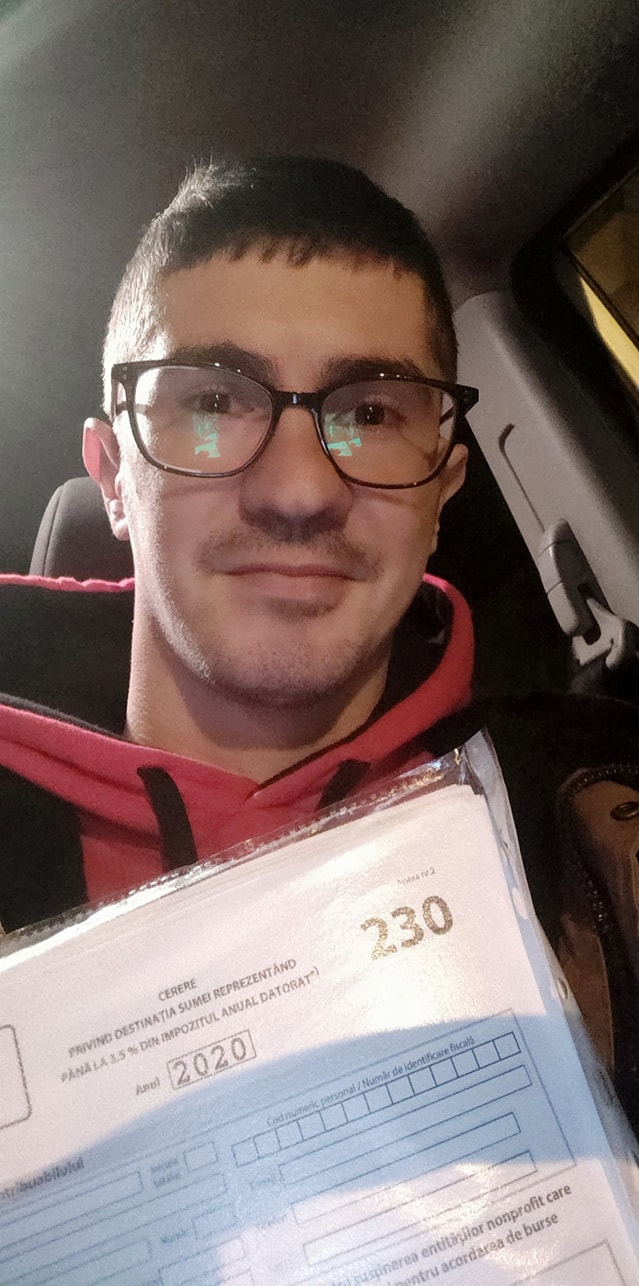 A fost nevoit să plece la muncă în Anglia, pentru a strânge bani, de unde s-a întors, anul trecut, la debut de pandemie. A fost împins de nevoi, întrucât, pentru a-și cumpăra mașina a trebuit să se împrumute. Timp de aproape doi ani, a lucrat la Wellingborough, într-un depozit de haine, unde aranja, făcea pachete, încărca TIR-urile pentru a fi trimise spre diferite destinații. Se întorcea în țară, din când în când, însă doar pentru a continua acțiunile caritabile sezoniere, de Paște, la începutul școlii și de Crăciun. Și numai în perioadele de concediu pe care i le acorda patronul englez. După ce a revenit acasă, în plină pandemie, s-a apucat, imediat, de treabă, implicându-se, împreună cu amicul său Eduard Tărcuță, în achiziționarea unui aparat Real Time PCR, pentru spitalul din Onești, dar și a unui frigider special cu destinație sanitară, măști pentru populația sărmană, dezinfectanți sau apă pentru internați, efort care a presupus o sumă uriașă, undeva la … 80.000 de euro. În perioada de „lockdown”, și chiar un timp după aceea, a distribuit alimente bătrânilor și familiilor cu mulți copii. A trebuit să se separe de ai lui, pentru a reduce total riscul de a-i îmbolnăvi, în cazul în care ar fi luat virusul. De mai bine de un an, a reușit să-și facă o asociație – „SufletEști” – prin care poate aduna mai facil donații de la firme. Cu resursele strânse, samariteanul din Onești s-a implicat în sute, mii de acțiuni caritabile, printre care „Un copil și un bătrân fericit, de Crăciun”, prin care, spijinit de oameni de bine de la Colegiul de chimie „Pentru Poni” din localitate, le trimite celor mai puțin norocoși alimente, în general neperisabile, celor mici punându-le în sacoșe și jucării, dulciuri sau îmbrăcăminte. Apoi o alta denumită „Ghiozdănelul” prin care împarte ghizdane complet echipate pentru copii, iar celor cu nevoi suplimentare le mai asigură și hăinuțe.