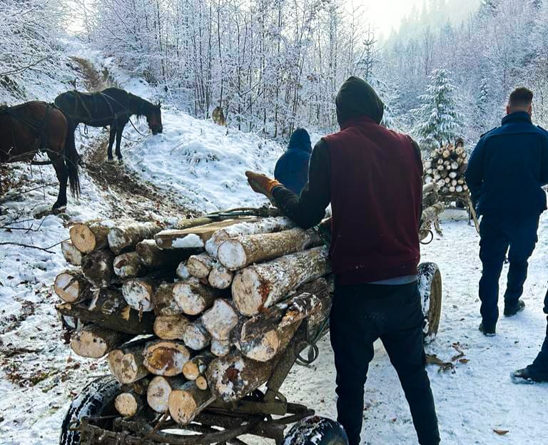 În acest sens, sâmbătă, 9 decembrie 2023, jandarmii din Gruparea Mobilă Bacău au desfășurat o acțiune punctuală pentru prevenirea și combaterea furtului de material lemnos pe raza Ocolului Silvic Comănești, iar în urma acestei acțiuni au fost depistate 7 persoane, cu vârste cuprinse între 17 și 55 de ani din Comănești, care transportau aproximativ 6 metri cubi de material lemnos cu ajutorul a 7 atelaje hipo, fără actele de proveniență și transport necesare.