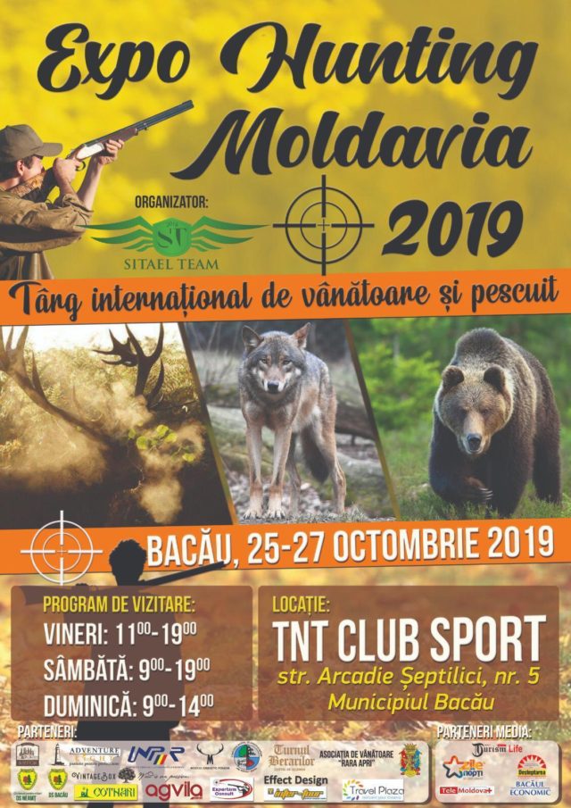 Compania SITAEL Team 2018 face ultimele pregătiri pentru deschiderea, pe 25 octombrie, a ediției din acest an a Expoziției „Hunting Moldavia – Târgul Internațional de Vânătoare și Pescuit”. Evenimentul va avea loc în perioada 25-27 octombrie la Clubul de Sport, din Bacău, str. Arcadie Șeptilici nr. 5, și va include și un festival vânătoresc, tir cu arcul și activități distractive pentru copii și tineret.
