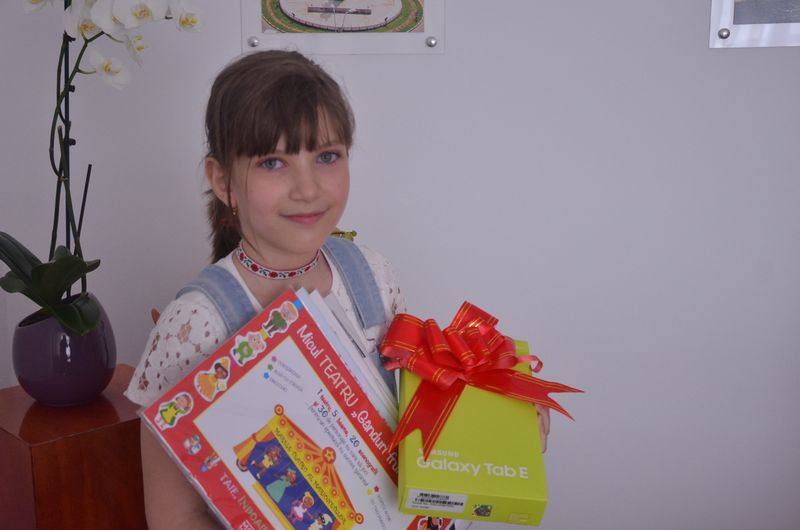 Concursul „ Fă-i o bucurie copilului tău de 1 Iunie!” i-a adus în dar o tabletă Samsung Galaxy Tab E, unei fetițe de 8 ani din Moinești. Sara Ioana Cioarec a primit cadou de la nașa de botez cărțile din colecția „Taie, Îndoaie și Lipește”. Taloanele care au apărut în ziarul Deșteptarea în cele 4 zile de miercuri ale concursului, i-au dat șansa Sarei să fie câștigătoare.