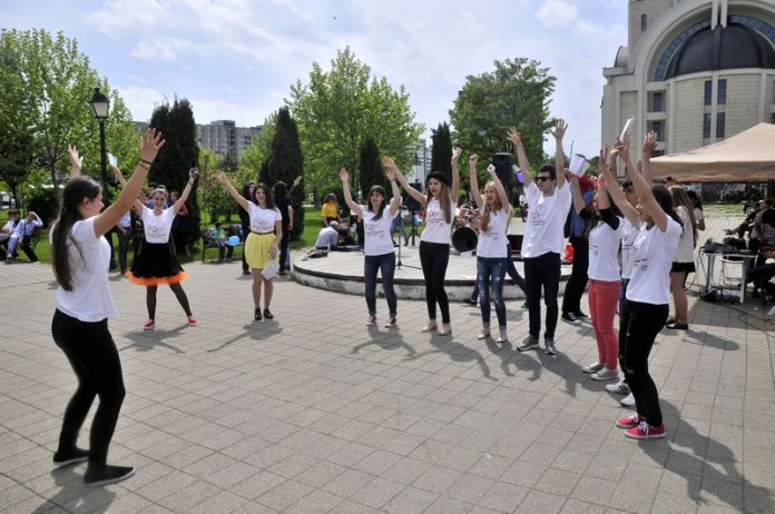 Tinerii nu s-au rezumat la a imparti pliante si fluturasi. Pentru a atrage atentia trecatorilor, adolescentii au dansat si au cântat, mai ales ca, la urma urmei, era sarbatoarea lor.