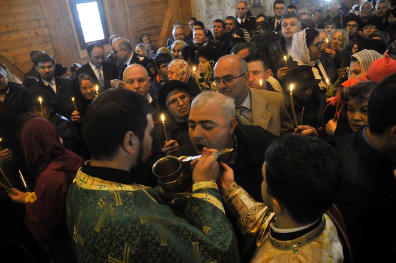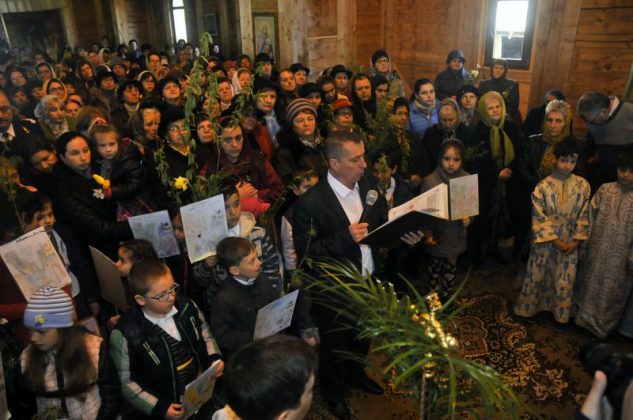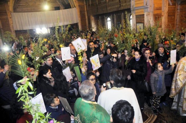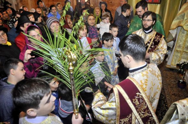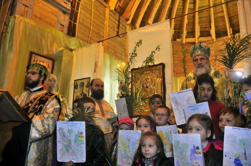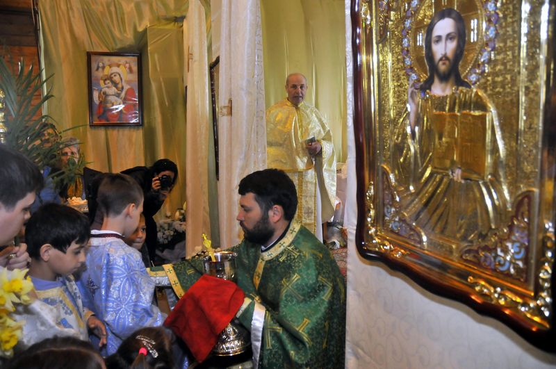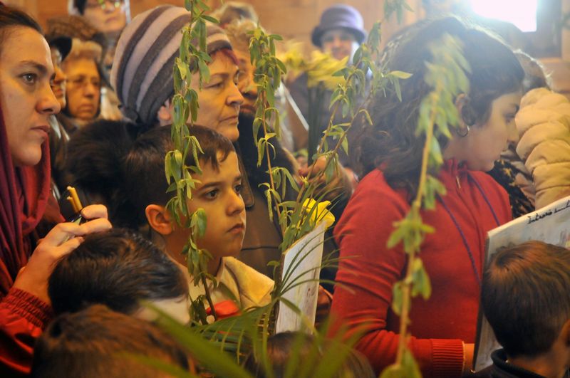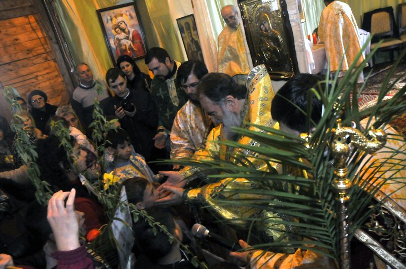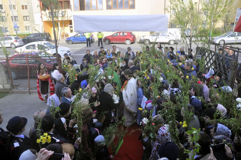 Printre razele tăioase ale unui soare de început de Prier, enoriaşii Bisericii „Intrarea Domnului în Ierusalim” de lângă sediul pompierilor militari băcăuani au venit cu flori şi ramuri de salcie în mâini ca să-şi primească invitaţii la sărbătoarea hramului.