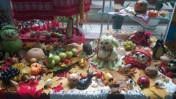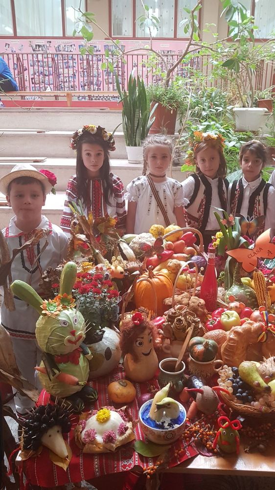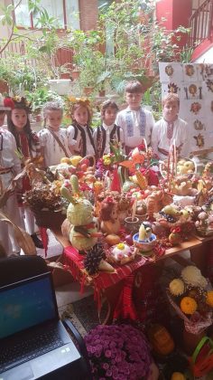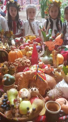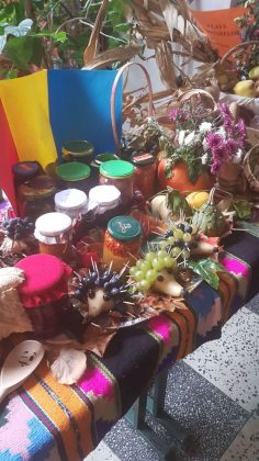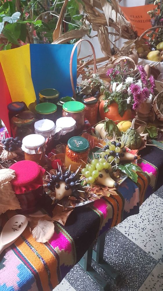 Totodată, copiii au pregătit şi o expoziţie de preparate specifice toamnei: zacuscă, compoturi, dulceţuri, toate ornate cu buchete de flori de sezon. Alte expoziţii cuprind desene, colaje din frunze şi bostani sculptaţi.