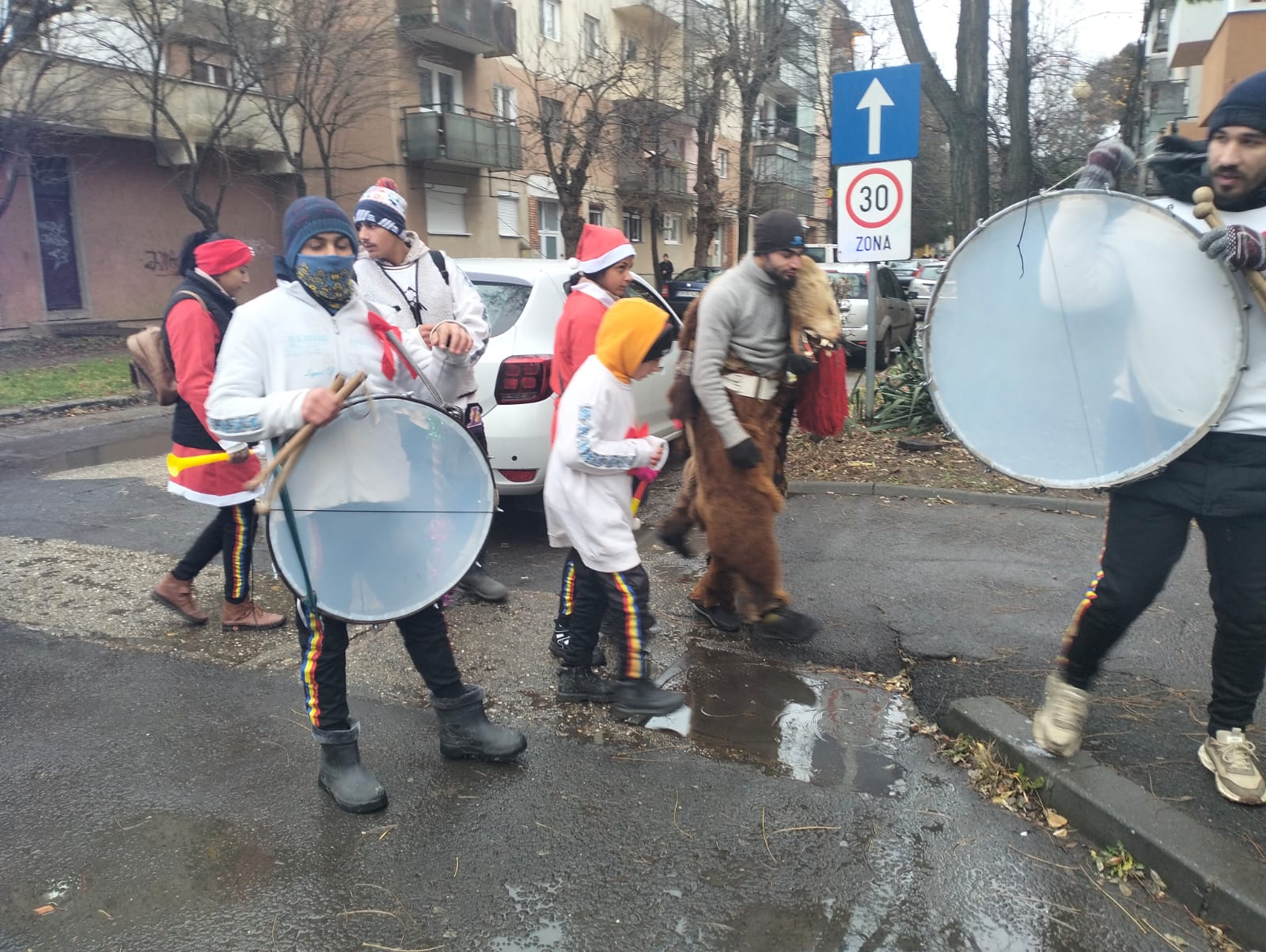 Un grup de șapte persoane, provenind din județul Bacău, a fost identificat și sancționat de Poliția Locală din Satu Mare, după ce au fost surprinși pe străzile municipiului, îmbrăcați în costume populare, inclusiv blănuri de urs, și însoțiți de tobe, fluiere și vuvuzele.