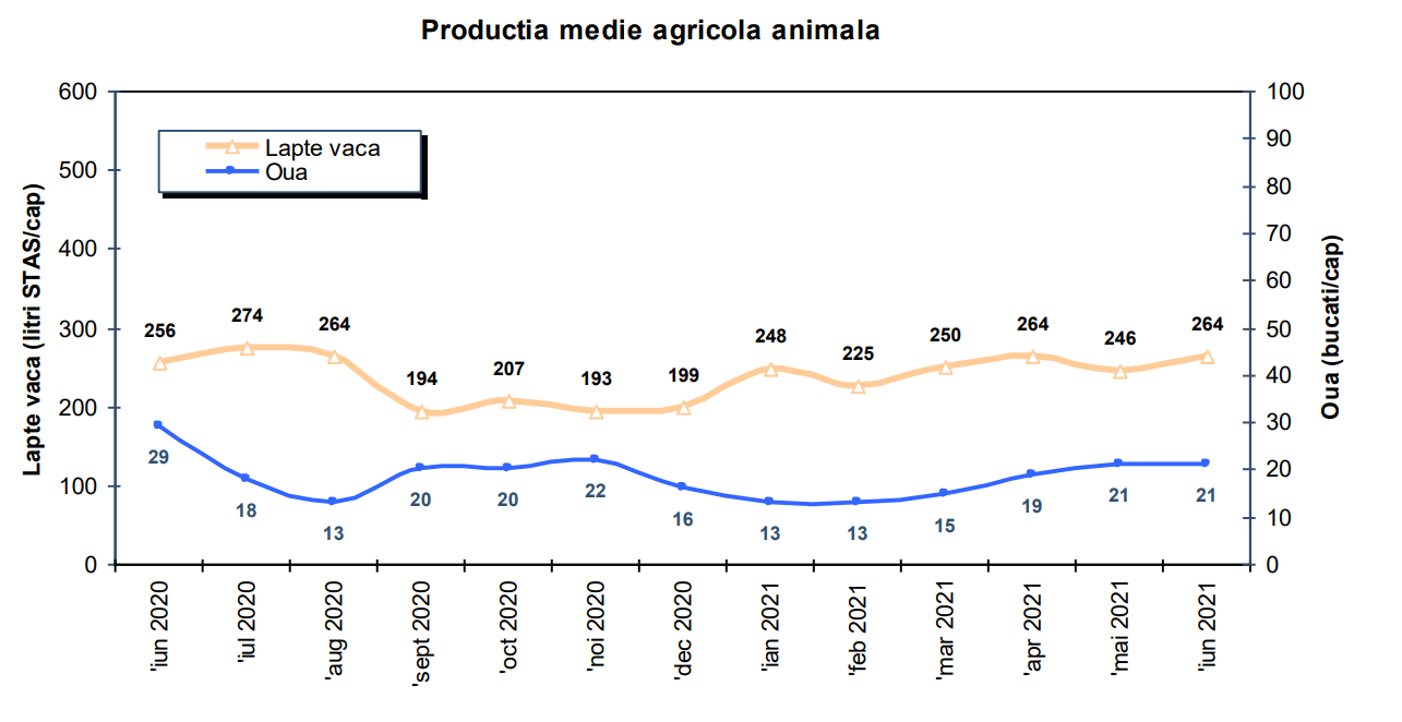 De asemenea, s-au mai obţinut 413,9 mii hl lapte de vacă şi 65,4 milioane bucăţi ouă consum.