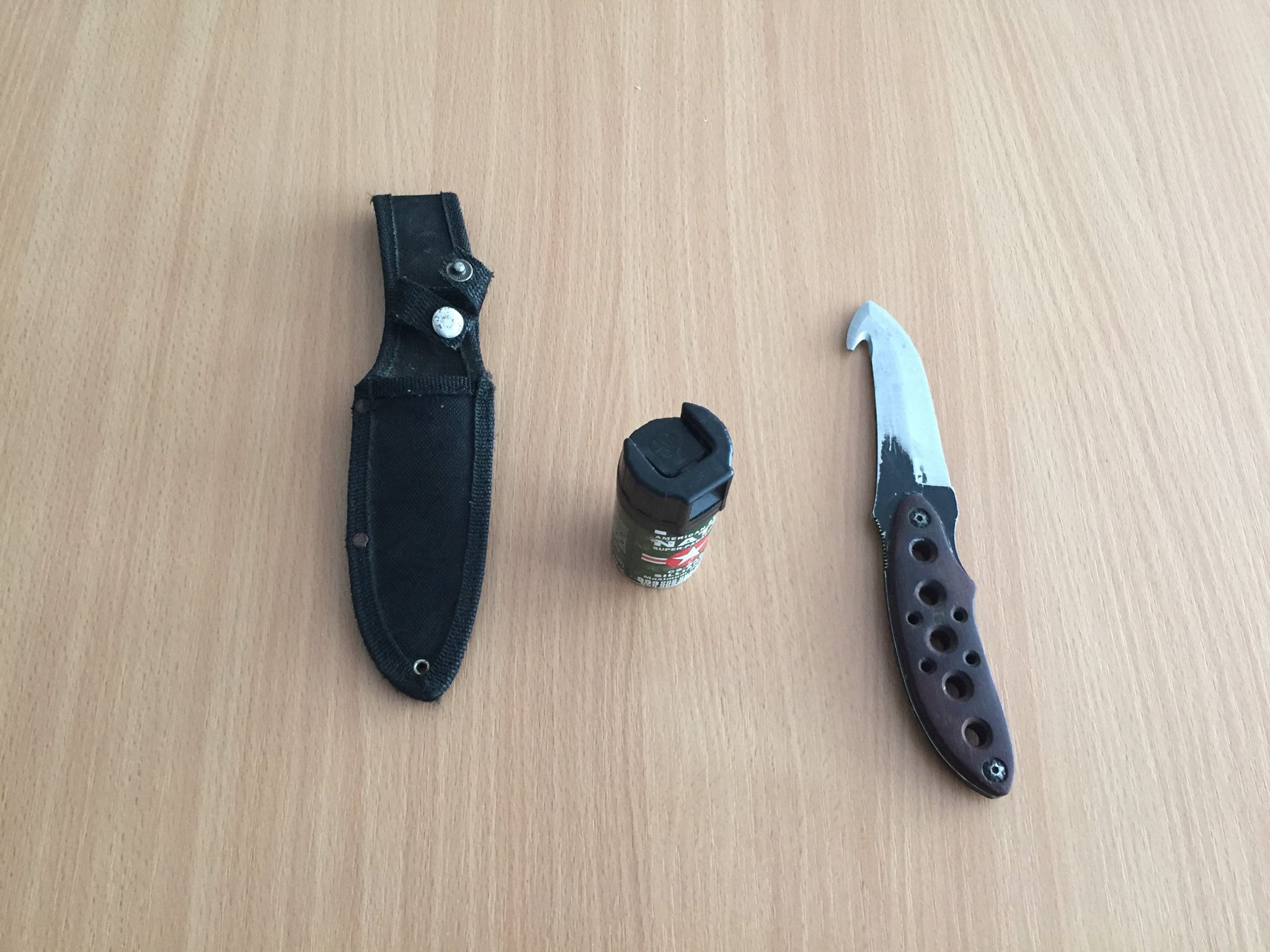 In momentul in care, acesta a dorit sa coboare din masina pentru a riposta, agresorul a scos un cutit, cu care a inceput sa il ameninte, fiind imobilizat de politisti, care au gasit asupra sa, in urma controlului corporal si un spray iritant -lacrimogen.