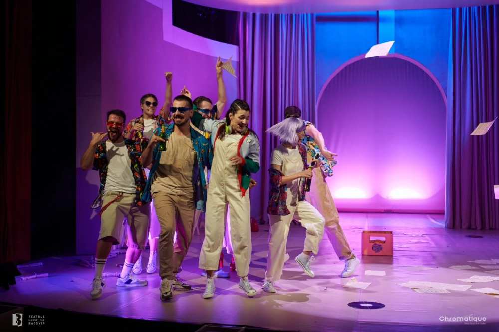 Deloc întâmplător, pentru că regizorul Horia Suru are un program estetic răspunzând tipului său de sensibilitate, căutărilor sale, textul mi-a amintit de „O mie de motive” de Duncan Macmillan, un alt spectacol al său de succes. Atras de teatrul contemporan, de piese care pun probleme actuale, în care se simte aerul timpului, Horia Suru este foarte activ, pune spectacole pe multe scene din țară, după ce s-a făcut remarcat, în 2014, cu „ActOrchestra”, un show sclipitor, exuberant, montat la Teatrul Național din București, și care a luat câteva premii la unele festivaluri din țară. Iar anul trecut, a câștigat mult doritul Premiu UNITER pentru regie, și anume pentru excepționalul său spectacol (de la Teatrul Dramaturgilor Români) cu „Trilogia minelor” de Csaba Szekeli. La teatrul Bacovia a semnat „Călin (poveste modernă), non-verbal, „We are camera” de Fritz Kater, „Crocodil” de Elise Wilk, „Amphitrion 38” de Jean Giraudoux. Revine acum, alături de câțiva dintre colaboratorii lui statornici, cu care face o bună echipă, Sophie Duncan, asistent regie și coregrafie, Raluca Alexandrescu, scenografie (simplă, eficientă, costume fanteziste, inspirate), Costi Baciu, lighting design (excelent), Romulus Boicu, grafică, Petre Ancuța, aranjament muzical, reușind un spectacol din zona divertismentului superior, care are multe de spus, lucruri serioase, dincolo de aparența veselă, viu colorată, muzical ritmată. Folosește inteligent, inventiv, cu bună știință tehnica surprizei, acaparând total atenția spectatorului, pe care-l derutează și-l uimește, improvizând năstrușnice momente, cum este cel de la începutul spectacolului „O poveste superfericită”, când în sală năvălește, într-o zarvă nebună, un grup de actori puși pe șotii. Sunt niște „invadatori” simpatici, gălăgioși, care caută diverse lucruri și fac lucruri trăsnite, totul pe o muzică foarte antrenantă (muzica originală, Matthew Floyd Jones), într-o atmosferă electrizantă, cu artificii și efecte de lumină spectaculoase. Asta în timp ce scena înfățișează un culoar de așteptare aseptic, părând a fi cel al unei clinici, cu scaune de o parte și de alta, totul într-o culoare deschisă, neutră.