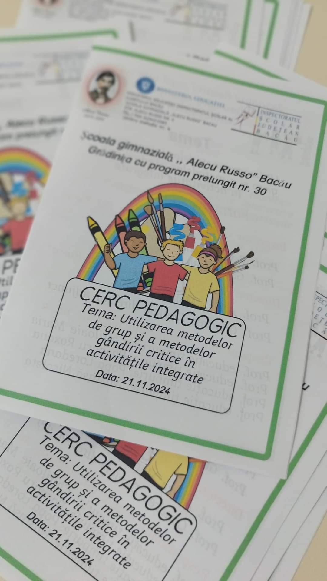 Grădinița cu Program Prelungit Nr.30, structură a Școlii Gimnaziale „Alecu Russo” Bacău, a avut onoarea de a găzdui joi, 21 noiembrie, Cercul pedagogic al educatoarelor – un eveniment dedicat schimbului de experiențe și promovării bunelor practici în domeniul educației timpurii.