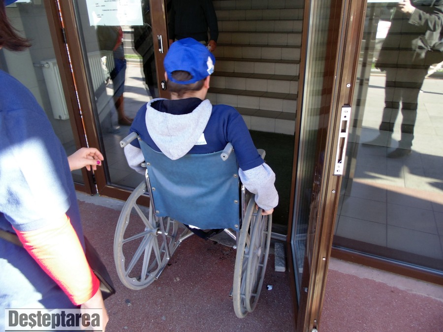 In plus, exista si un grup sanitar amenajat pentru personele cu handicap”, a declarat Iulian Oboroceanu, purtatorul de cuvânt al Casei Judetene de Asigurari de Sanatate Bacau. Urmatorul obiectiv a fost sediul Postei Române, unde niciuna dintre cele doua rampe amenjate la intrarea in institutie nu putut fi urcata prin fortele proprii de catre persoanele cu dizabilitati, fiind nevoie de ajutorul a nu mai putin de patru persoane sanatoase pentr escaladarea acestora.