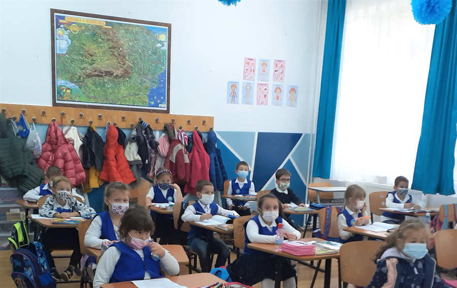 Ochişorii curioşi privesc din băncile noi către ecranul unde doamna învăţătoare le descoperă minunile cunoaşterii. Din păcate, măştile acoperă zâmbetul elevilor, însă glasurile limpezi răspund vioi atunci când au o curiozitatea sau ştiu răspunsul potrivit. Şi asta se întâmplă de la prichindeii din clasele pregătiroare, până la cei de a VIII-a, care se pregătesc de zor pentru examenul ce-i aşteaptă.