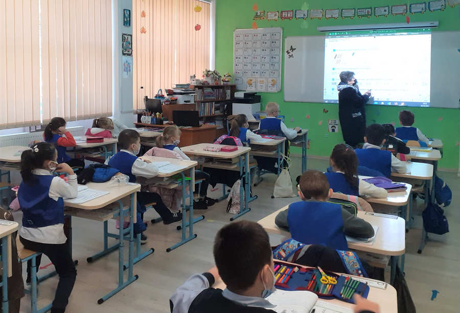 Ochişorii curioşi privesc din băncile noi către ecranul unde doamna învăţătoare le descoperă minunile cunoaşterii. Din păcate, măştile acoperă zâmbetul elevilor, însă glasurile limpezi răspund vioi atunci când au o curiozitatea sau ştiu răspunsul potrivit. Şi asta se întâmplă de la prichindeii din clasele pregătiroare, până la cei de a VIII-a, care se pregătesc de zor pentru examenul ce-i aşteaptă.