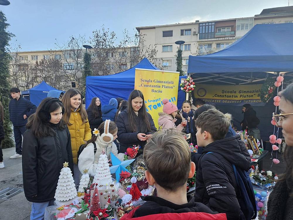 Școala Gimnazială „Constantin Platon” și Asociația de Părinți ai școlii au răspuns DA la invitația lansată de Federația Părinților din Bacău de a participa la Târgul de Crăciun al Școlilor din Bacău, un eveniment de suflet, organizat în parteneriat cu Primăria Municipiului Bacău, Consiliul Județean Bacău, Instituția Prefectului Județului Bacău, Inspectoratul Școlar Județean Bacău, Direcția de Sănătate Publică a Județului Bacău și Agenția Edu Travel.