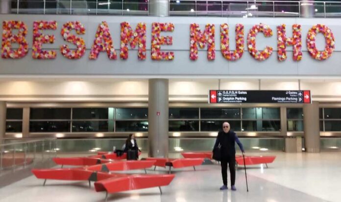 Călătorul ne-a și trimis prima poză de pe traseu, din Aeroportul Miami, făcută înainte de a intra prin Terminalul A din insula Dodge, de unde să se îmbarce pe nava de croazieră „Independence of the Seas”, cu destinația haitiană Labadie, aka (also known as) Labadee.