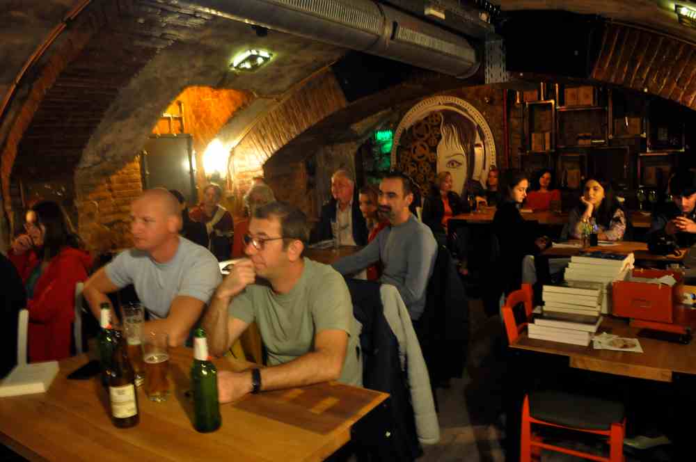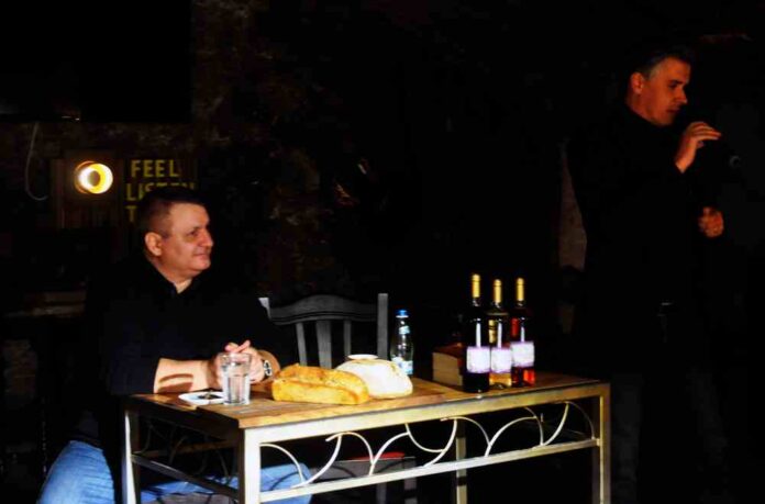 Viorel Ilișoi: La început a fost ușor pentru că scriam exact cum spunea Goethe: ”eu cânt cum cântă pasărea”. Adică nu trebuie să știi mare lucru, cânți frumos, natural… Îți vine să scrii, îți vine inspirația, pui creionul pe hârtie și te apuci de scris. La început a fost ușor, scriam poezii, câte 10 pe zi… Acum scriu câte cinci pe an! Apoi, lucrurile au început să devină din ce în ce mai grele, pe măsură ce mi-am dat seama că nu e totul să cânți ca pasărea, în modul cel mai liber și nativ, fără nici un fel de constrângere formală. Mi-am dat seama că trebuie să înveți un meșteșug. Poezia nu se scrie oricum… Îți trebuie multe lecturi, îți trebuie mult exercițiu. Am observat că devii din ce în ce mai bun cu cât scrii mai mult și exersezi mai mult. Îți perfecționezi stilistica, tehnica șamd. Dintr-un motiv pe care nu-l cunosc, s-ar putea să fie teama de mine însumi, eu sunt un autor care scrie foarte greu, inclusiv reportajul unde – la ziar – se cerea să fie dat la o anumită oră! Mereu întârziam câte o zi, două, trei… o săptămână, fiincă elaborez foarte greu textul. Îl scriu, nu-mi place, mai șterg, revin… Nu prea-mi iese din prima. E mult meșteșug acolo, multă tehnică și termin transpirat. Pentru mine, e un chin scrisul! Dar, paradoxal, este un chin frumos, adică îl suport știind că la capătul acestui chin vine satisfacția de a vedea că ai scris ceva ce îți place în primul rând ție. Și apoi, așa cum a fost și în seara asta, când am avut confirmarea că mai sunt și alții cărora le place ceea ce scriu eu.